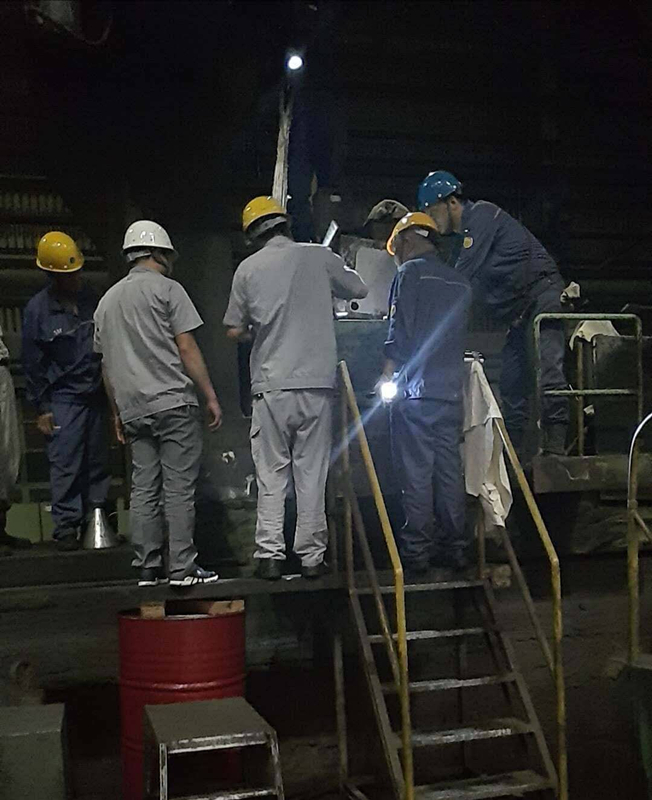 經(jīng)排查,確定厚板軋輥磨床故障為磨床主軸抱死,必須要對(duì)主軸進(jìn)行解體維修。而厚板軋輥磨床一旦長時(shí)間停機(jī),會(huì)造成厚板生產(chǎn)線停產(chǎn),嚴(yán)重影響厚板的正常生產(chǎn)。為了將故障的影響降到最低,我司技術(shù)人員在搶修現(xiàn)場(chǎng)不辭辛勞、加班加點(diǎn),經(jīng)過三天三晚的連續(xù)奮戰(zhàn),終于成功排除故障,搶修完成后還主動(dòng)協(xié)助對(duì)方試車和確認(rèn),最大程度保證了寶鋼厚板部的生產(chǎn)。花茹等三位員工用過硬的專業(yè)技術(shù)、軋輥磨床領(lǐng)域的深厚技術(shù)積累和踏實(shí)肯干的工作作風(fēng)贏得了寶鋼方面的一致肯定,為我司和寶鋼未來進(jìn)一步合作夯實(shí)了基礎(chǔ)。
